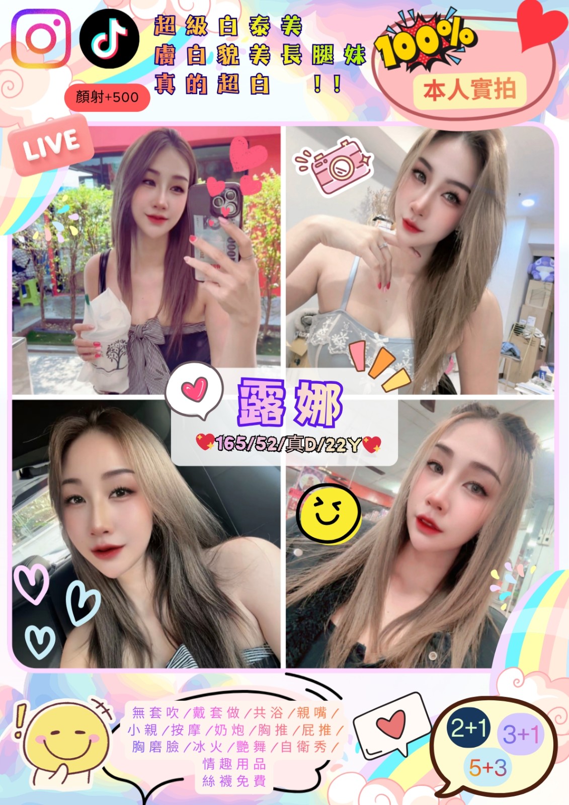 無套吹/戴套做/親嘴/69/奶炮/舌吻/按摩/舔蛋/情趣用品/舔鮑