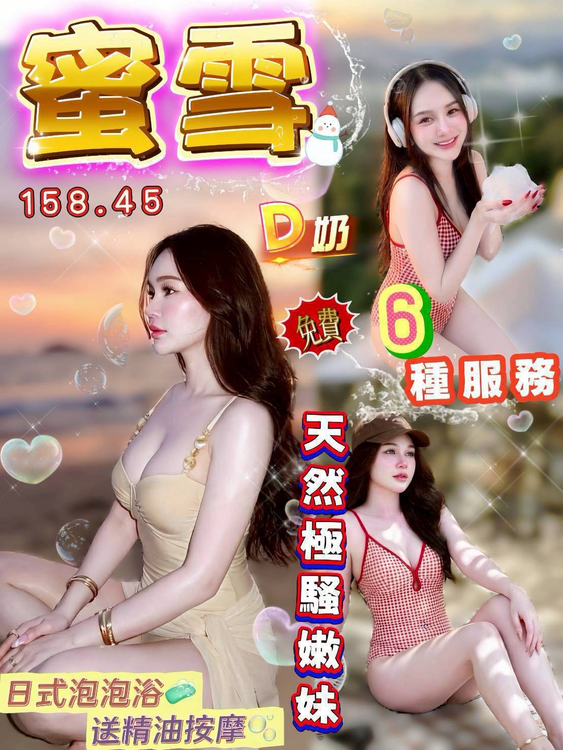 ✅無套吹✅帶套做✅甜蜜共浴✅小親親✅品鮑✅69✅奶炮✅按摩✅69✅事後按摩✅雙飛