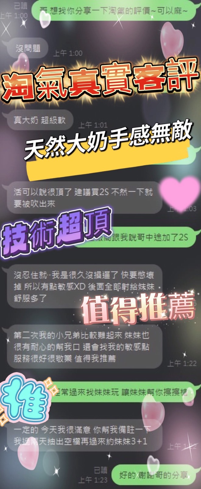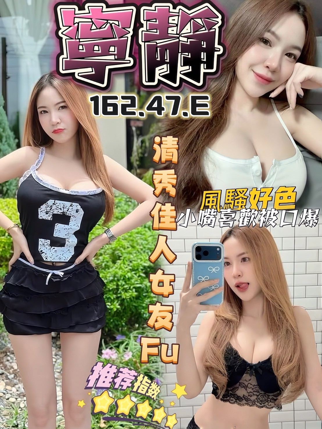 (無套吹 /共浴/舌吻/奶炮/舔蛋/品鮑/胸磨臉/按摩/絲襪(客自備))