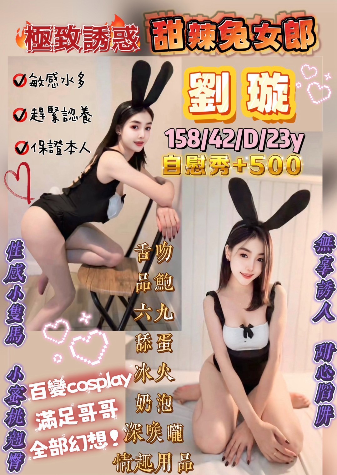 韓系最強小三,無辜深萌大眼、迷人魅力氣息、舉手投足充滿誘人費洛蒙,每次開班預約滿滿,外表第一、服務第一,來過都說歐一夕,此妹檔期有限敬請把握啊啊啊啊!