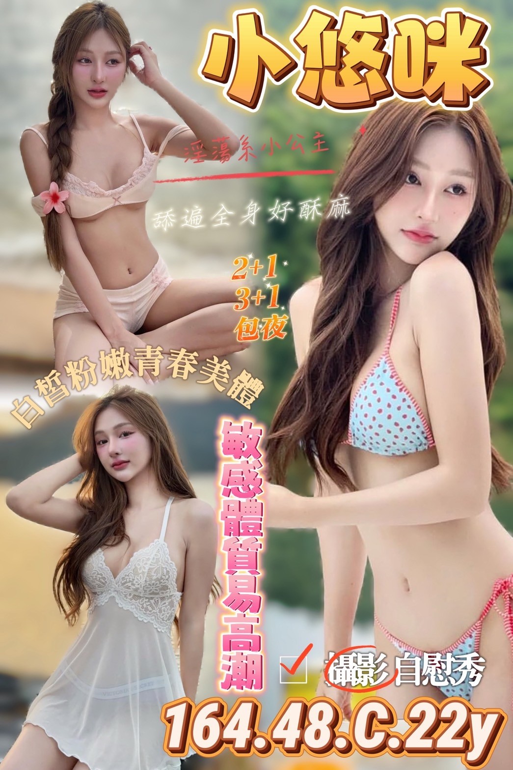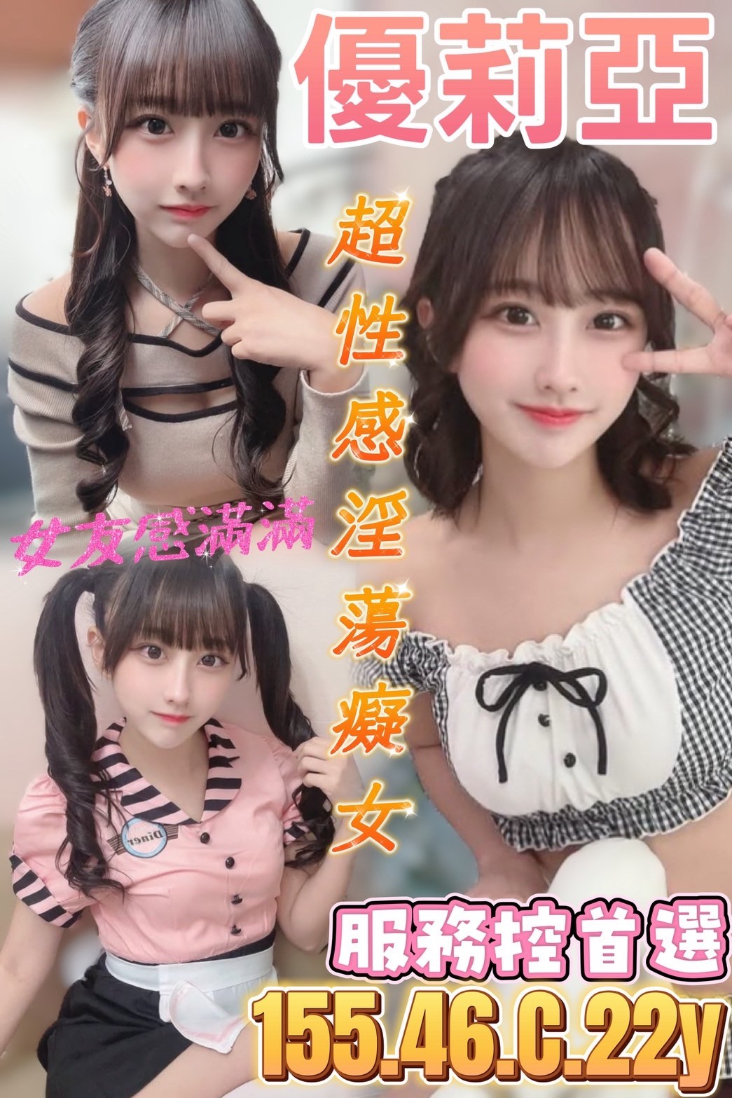 服務項目:共浴/無套吹/小親親/按摩/乳交/胸推/臀推/舔蛋/品鮑/69/情趣用品/二后一王/角色扮演(性感內衣)…