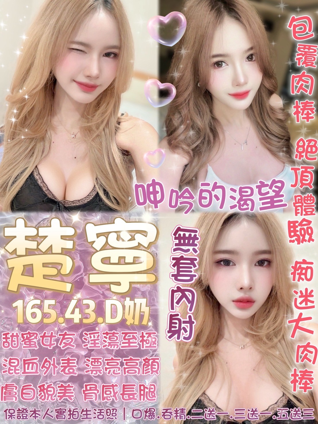 無套吹 共浴 小親親 深喉嚨 品鮑 69 舔蛋 胸磨臉 按摩 奶炮 雙飛 情趣用品(客自備 絲襪(客自備 胸推 屁推