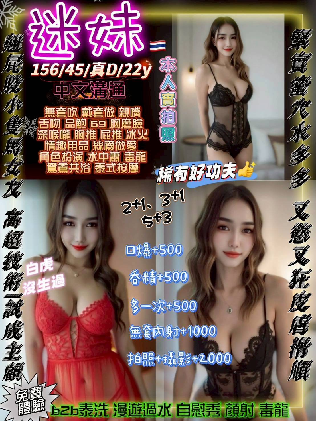 可毒龍(需先告知)、莞式服務 (需先告知)
